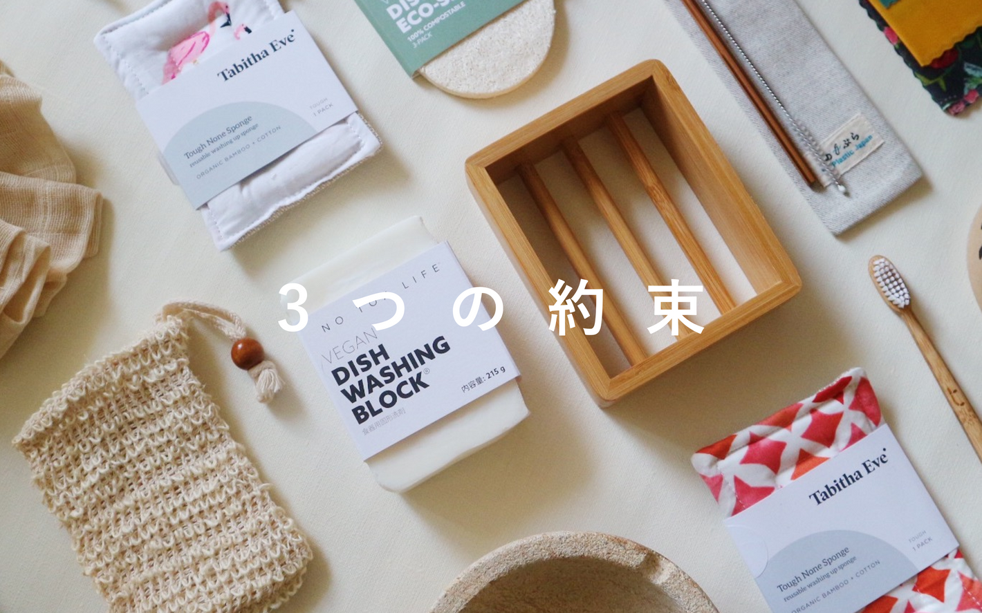 プラスチックフリー、合成界面活性剤フリーの、海と手肌に優しく快適な食器洗いの道具たち